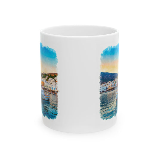 Mug - Sailboat Near Port in Greek Isles Ceramic Mug (11oz)
